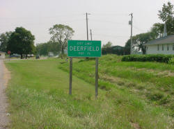 The village of Deerfield stands on lot 2, of the northwest quarter of section 7, in Deerfield township, running up the township line on the west, and to within a mile of the line on the north, making its location in the northwest corner of the township. It is a station on the M., K. & T. railroad, and is a thrifty little burg of something over two hundred inhabitants, with churches and good schools, and well-stocked stores and shops of various kinds.