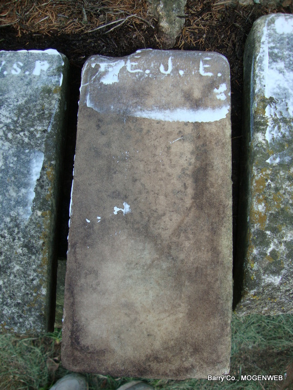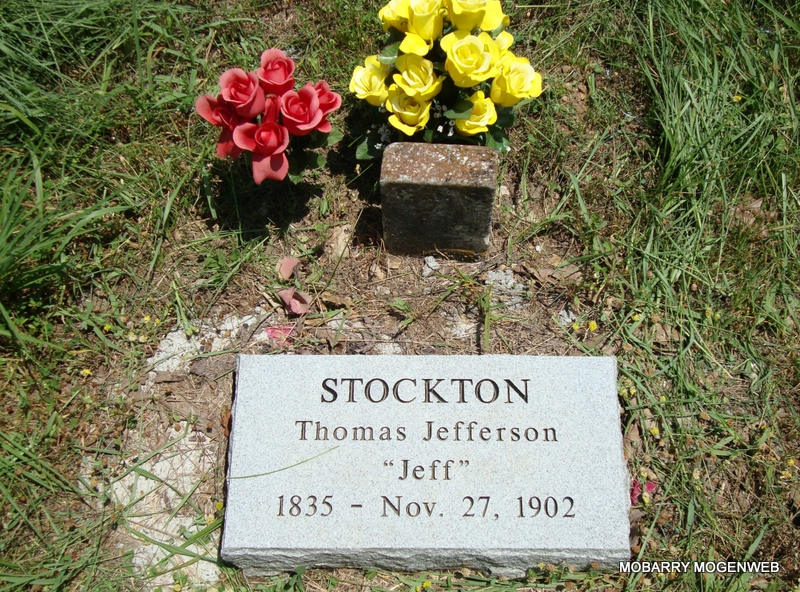 | STOCKTON, Thomas Jefferson "Jeff" | 1835 | Nov. 27, 1902 | Research Note: Son of Thomas Jefferson Stockton, born 1805, and Elizabeth Martindale. Jefferson Stockton married Sarah Walker on July 28, 1862 in Barry Co., MO. He married Mary Ann Short on June 14, 1868 in Barry Co., MO. He married Mary Emiline Tomlinson on Mar. 30, 1873 in Barry Co., MO. - Plot Photo | Census MO Marriage Records Phyllis Long Photos Connie Schmidt |