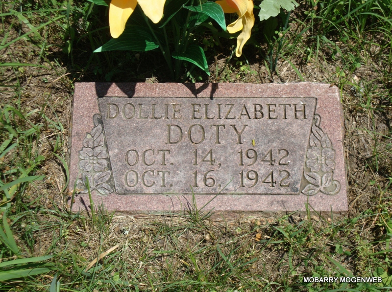 Research Note: Daughter of George W. Doty and Lola May Wilson, both born Barry Co., MO. John Doty of Rural Jenkins, MO was the informant on the death certificate. - Another Photo - Another Photo | Death Certificate Phyllis Long Photos Connie Schmidt Photo Nora Eden |
