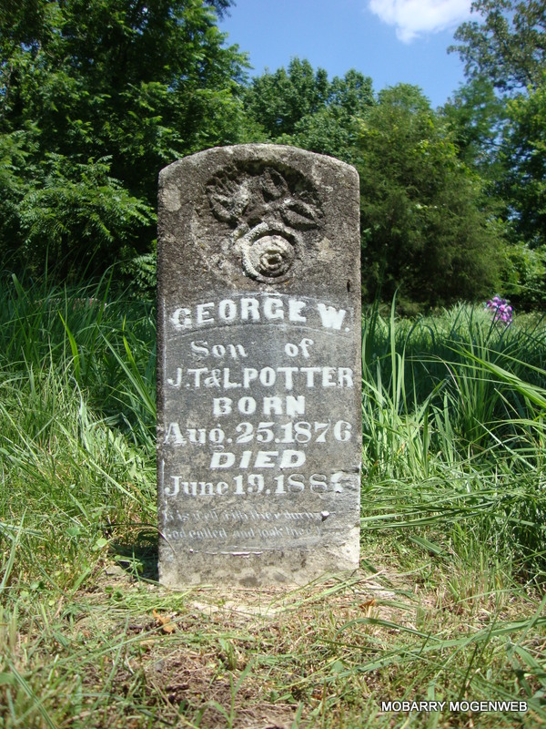 Inscription: "Son of J. T. and L. Potter" - Research Note: He was a son of James Thomas Potter and Lucinda Short. - Plot Stone | Headstone and Personal Knowledge Shirley Writer Chang Photos Connie Schmidt |