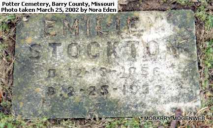 | STOCKTON, Mary Elizabeth "Emilien" (THOMLINSON) | Dec. 19, 1856 | Feb. 23, 1932 Barry Co., MO |
