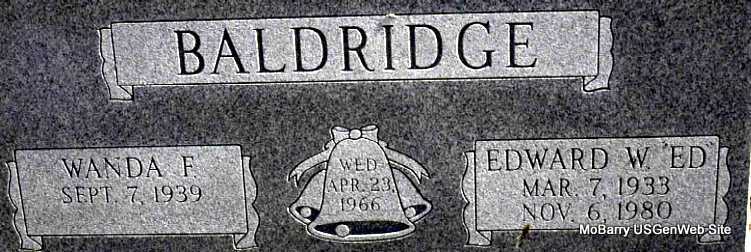 | BALDRIDGE, Edward W. "Ed" | Mar. 7, 1933 | Nov. 6, 1980 | Research Note: 1940 Census, Monett, Barry, Missouri - Carl Baldridge, age 31, born OK; Mildred W., age 28, born OK; Edward W., age 7, born MO; Howard L., age 1, born MO. | Census Phyllis Long Photo Darla Marbut |