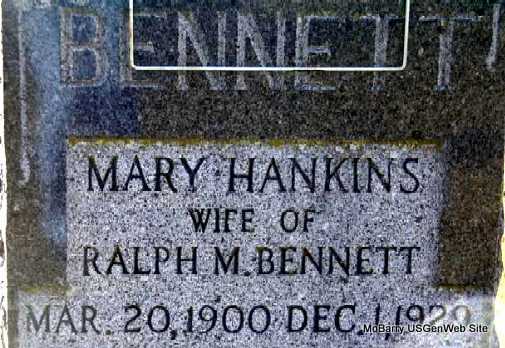 | BENNETT, Lenora Mary Jewell(HANKINS) | May 20, 1900 | Dec. 1, 1929 | Research Note: Wife of Ralph M. Bennett. She was a daughter of John Love and Martha Jennie (Shaffer) Hankins. | Note Photo Darla Marbut |