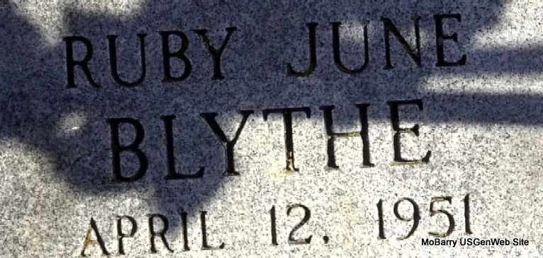 | BLYTHE, Ruby June | No Date | Apr. 12, 1951 | Inscription: "Baby" - Research Note: Daughter of Carl and Naomi R. (Hodge) Blythe. | Mother's Obit Gerald Haddock Photo Darla Marbut |