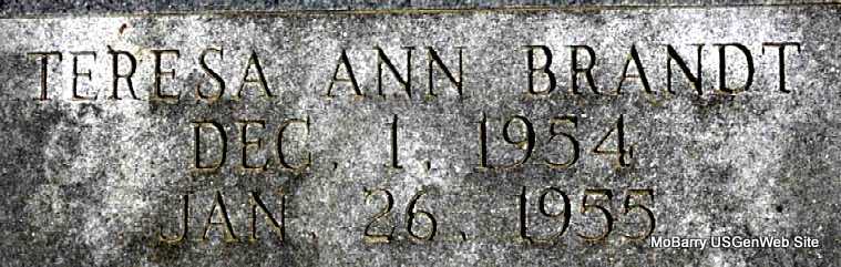 | BRANDT, Teresa Ann | Dec. 1, 1954 | Jan. 26, 1955 | No Data | Photo Darla Marbut |