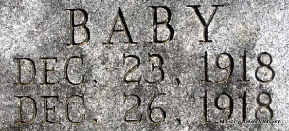 Inscription: "Baby" - Research Note: Death Certificate filed under James Edward Anderson. Son of Curtis Anderson and Ruby Mattingly. Born premature at 6 months. | Death Certificate Phyllis Long Photo Darla Marbut |