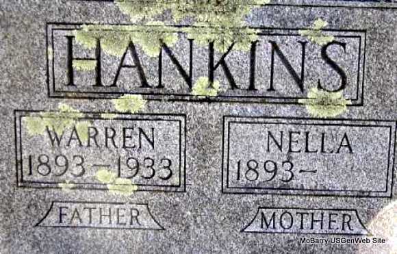 SSW: Nella - Inscription: "Father" - Research Note: According to his death certificate Ira Warren Hankins' father was John L. Hankins, born TN. His mother's maiden name was Shaffer, born in OH. His wife was listed as Nella Ann Hankins. He died from the effects of a gallbladder operation and was age 40 years, 8 months and 18 days old. Nilla Ann Hankins, Avoca, AR was the informant. | Death Certificate Donna Cooper Photo Darla Marbut |