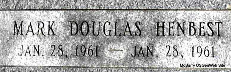| HENBEST, Mark Douglas | Jan. 28, 1961 | Jan. 28, 1961 | Research Note: Son of Carl & Roberta (Sapp) Henbest. | Note Donna Cooper Photo Darla Marbut |