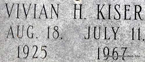 | KISER, Vivian H. | Aug. 18, 1925 | July 11, 1967 | No Data | Photo Darla Marbut |