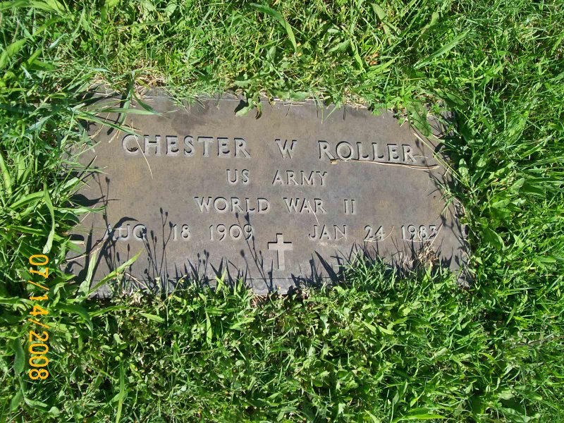 | ROLLER, Chester William | Aug. 18, 1909 | Jan. 24, 1983 | Inscription: "US ARMY WORLD WAR II" - Research Note: Son of Ahimus Hiram Roller and Alice Durenda Sooter. His wife was Dora Jordan. | Census Phyllis Long Photo Jay Trace |