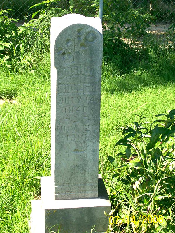 SSW: Alice D. - Research Note: Husband of Alice D. (Sooter) Roller - Son of Joshua R. and Nancy (Skelton) Roller. His stone reads that he was born Dec. 10, 1870 and not 1868 as Susan posted. The death certificate has birth date as Dec. 10, 1871. He was a retired farmer. Mrs. Bertha Miller of Monett, MO was the informant on the death certificate. | Note Donna Cooper Death Certificate Phyllis Long Photo Jay Trace |
