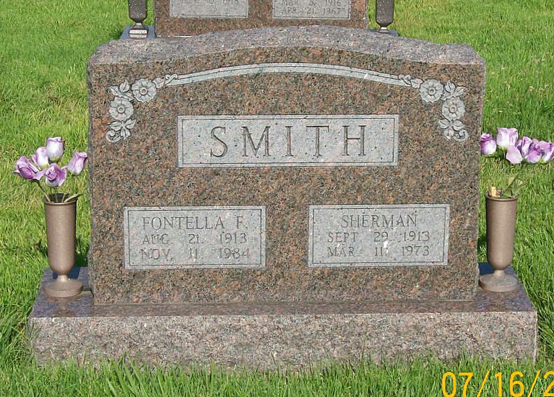 SSW: Donald R. - Inscription: "Married Aug. 5, 1942" - Research Note: Dau. of Thomas and Ida (Pittard) Hayes. She was a retired nurse's aide and a member of the Arnhart Southern Baptist Church near Purdy. She married Don Smith on August 5, 1942. She was preceded in death by one brother and one grandchild. | Monett Times Jan. 13, 2004 Mary Homesley Photo Jay Trace |