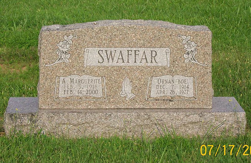 | SWAFFAR, Ornan Boe | Dec. 7, 1914 | Apr. 26, 1977 | SSW: Anna Marguerite - Research Note: Son of Thomas Jefferson Swaffar and Adelia Gilespie Liner. | Census Phyllis Long Photo Jay Trace |