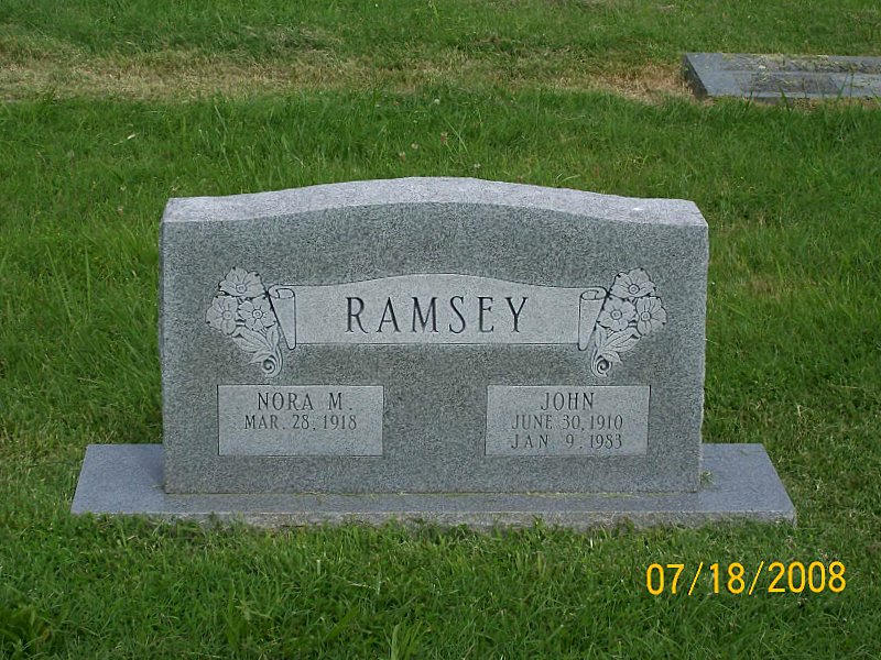 | RAMSEY, John | June 30, 1910 | Jan. 9, 1983 | SSW: Nora M. - Research Note: Son of Henry Ramsey and Lora Straub. Husband of Nora Boyd. | Census MO Marriage Records Phyllis Long Photo Jay Trace |