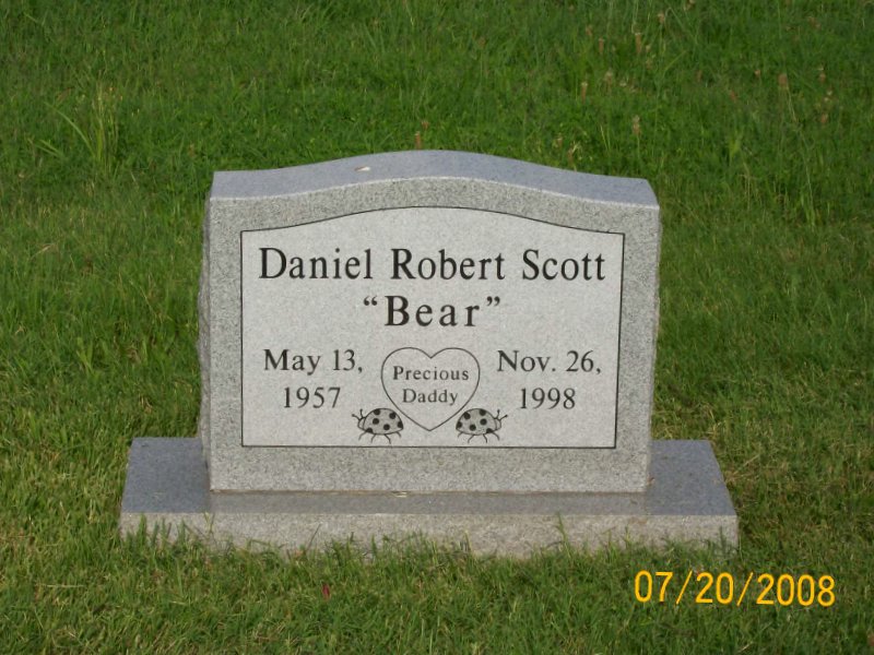 | STEWART, Robert | Aug. 23, 1953 | Apr. 3, 1998 | SSW: Donna - Inscription: "Mar. 9, 1988" - Research Note: He was the son of Richard "Sonny" Stewart and Willa Mae Hilburn. | Father's Obit Phyllis Long Photo Jay Trace |