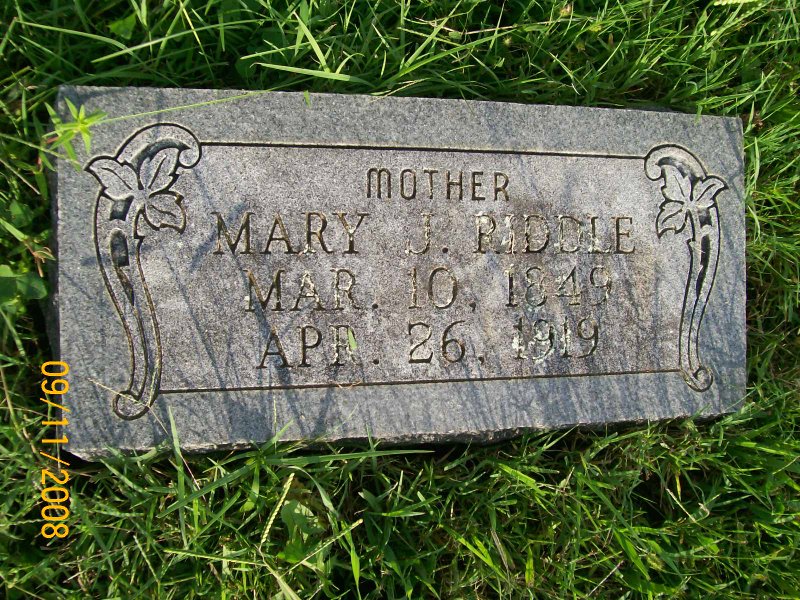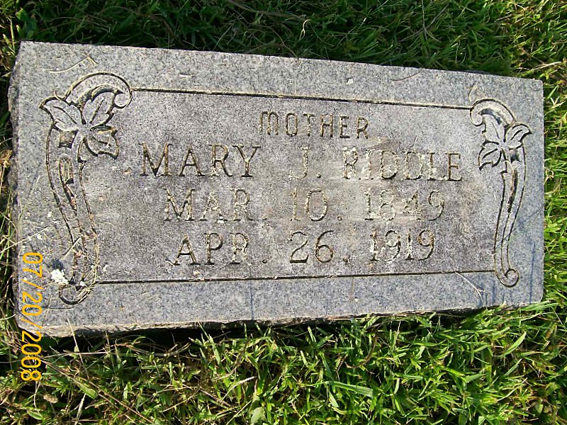 | RIDDLE, Mary Jane (BADGETT) | Mar. 10, 1849 TN |