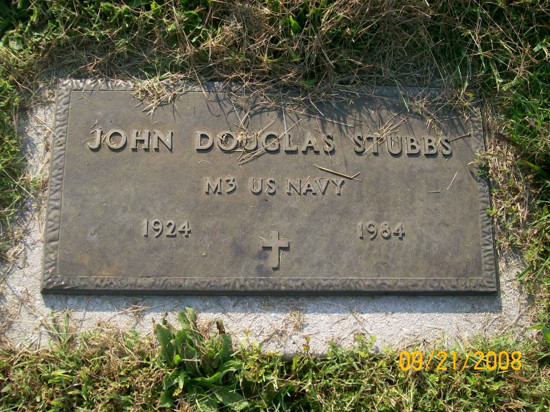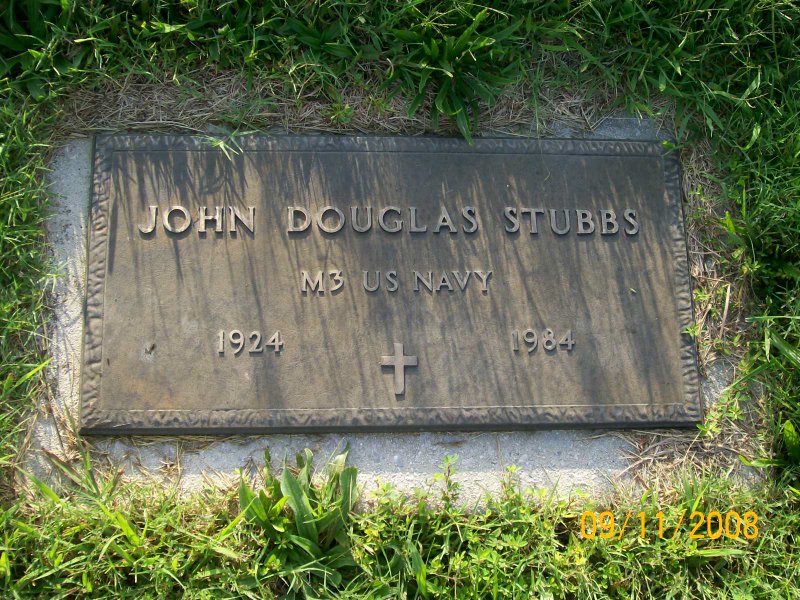 | STUBBS, John Douglas | Oct. 4, 1924 | Mar. 16, 1984 | SSW: Lula E. Gates and Elmer J. - Research Note: Son of Elmer J. Stubbs and Lula Gates. - Military Stone - Military Inscription: "M3 US NAVY" - Another Photo | Census Phyllis Long Photos Jay Trace |