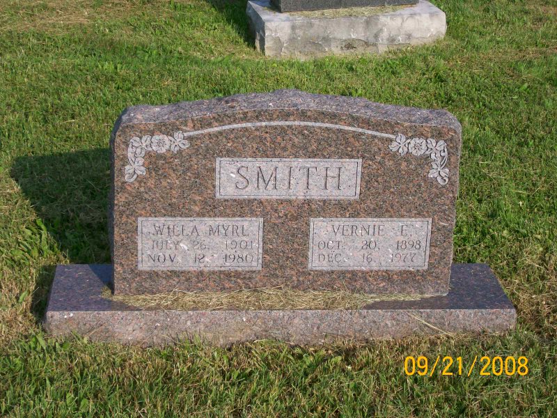 | SMITH, Willa Myrl (GRUBB) | July 26, 1901 | Nov. 12, 1980 | SSW: Vernie E. - Research Note: Daughter of John William Grubb and Minnie Mary Mizer both buried at Arnhart Cemetery. | Note Phyllis Long Photo Jay Trace |