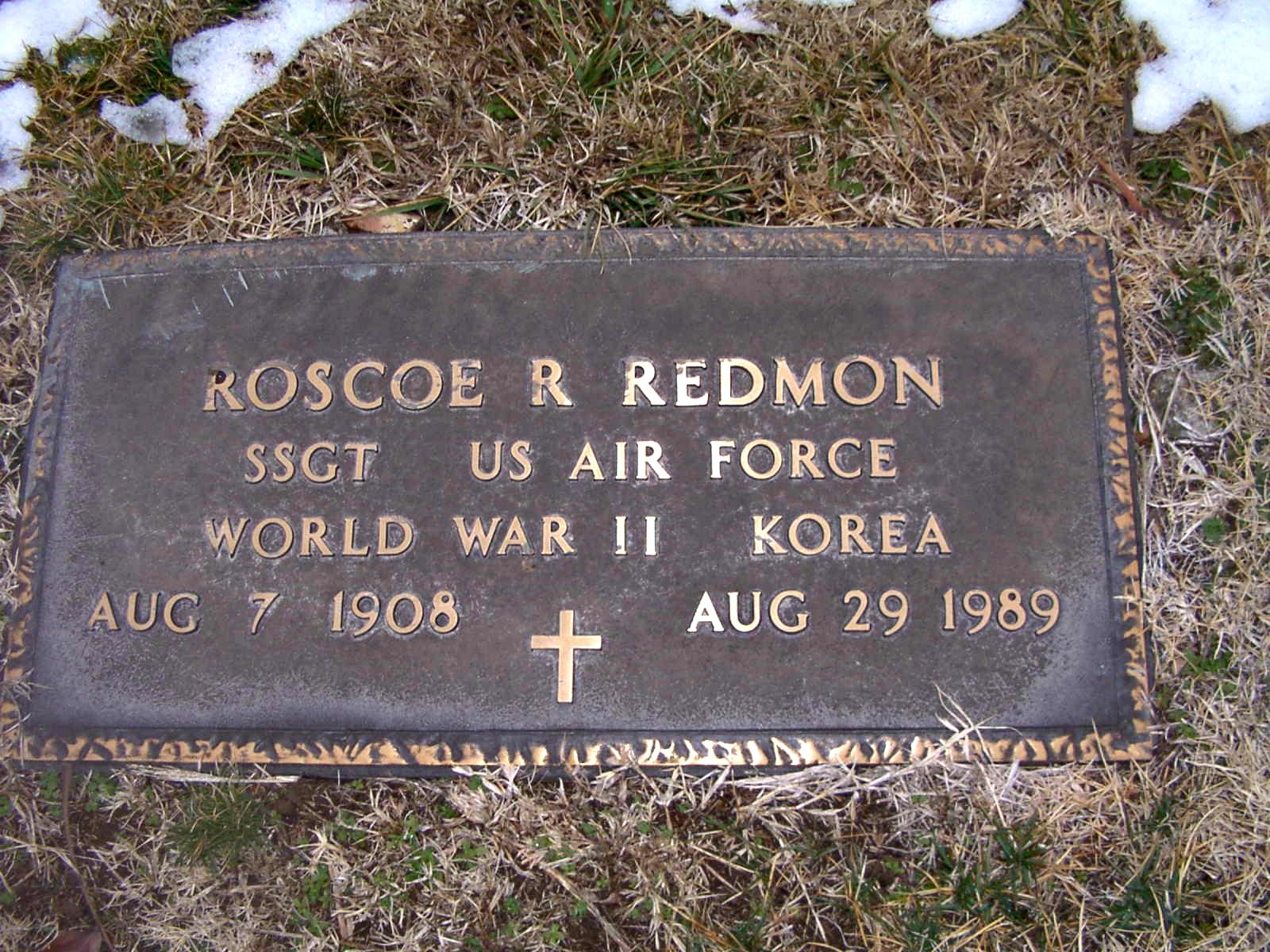 Inscription: "SSGT US Air Force - World War II, Korea - Research Note: Roscoe was the son of G. S. and Mary (Leigh) Redmon. He married Marie (Hoggett) Ozbun, April 12, 1948. - Another Stone - Inscription: "Gone, But Not Forgotten" | Family Records Shirley Larkin Photo Jay Trace |