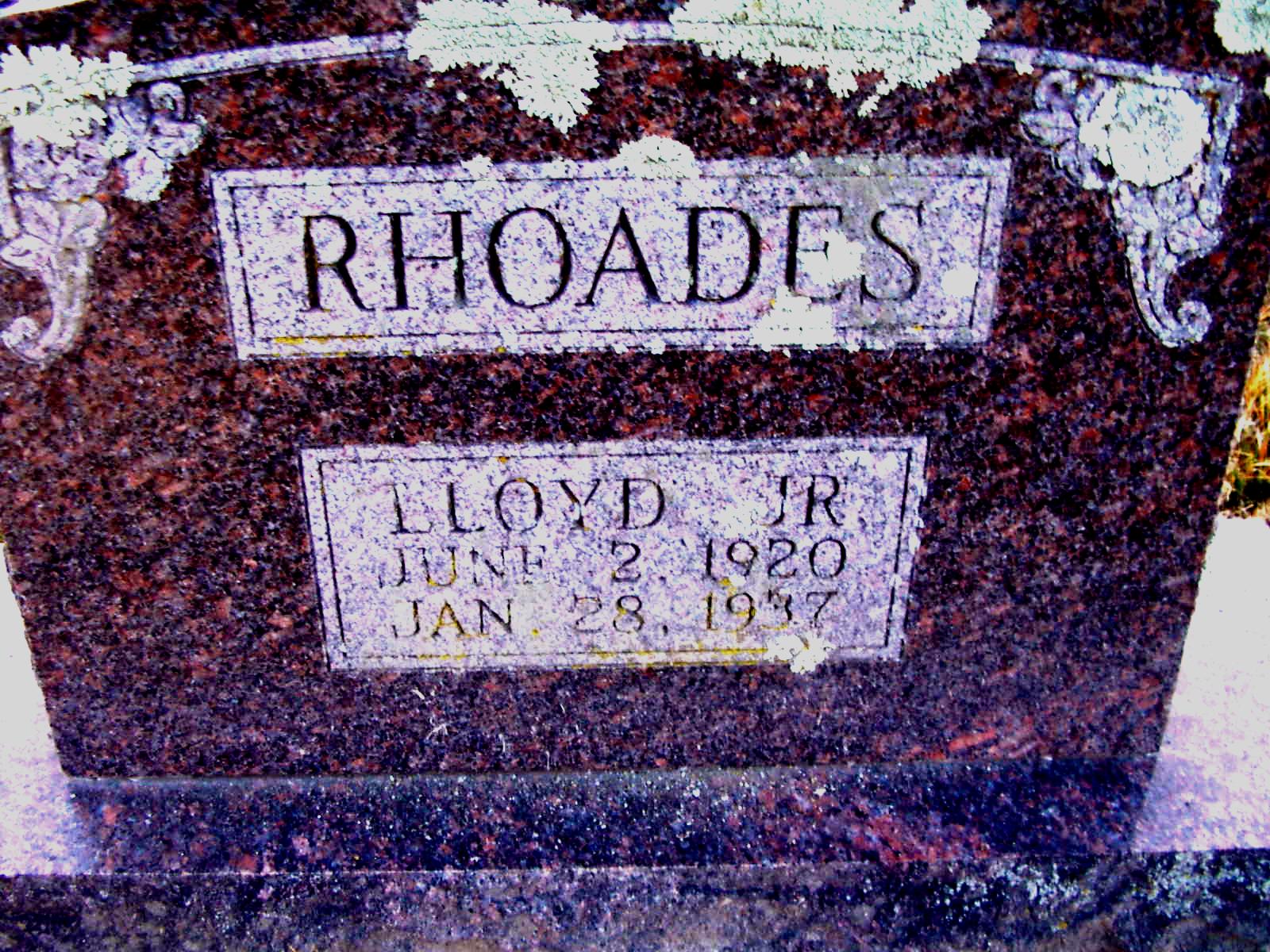 Research Note: Son of J. B. Rhoades born Golden City, MO and Florence Drake born Monett, MO. Hiram Drake of Monett, MO was the informant on the death certificate. Little's disease and epilepsy were the cause of death. | Death Certificate Phyllis Long Photo Jay Trace |