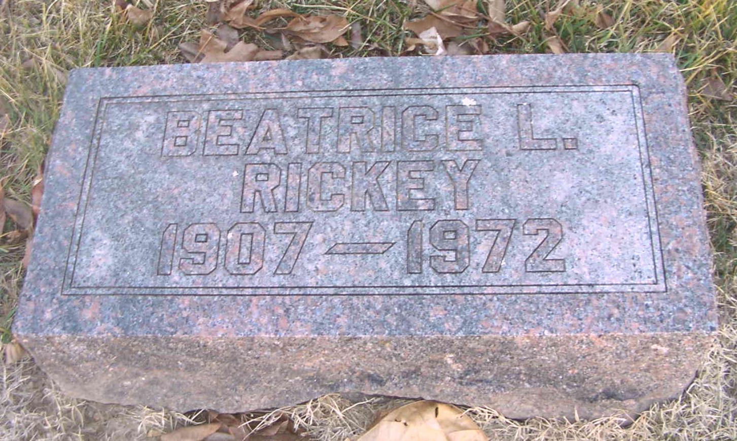 | RICKEY, Beatrice L. | Nov. 22, 1907 | Feb. 1972 | Research Note: Social Security listed her last residence Humansville, Polk Co., MO. | SSDI Photo Jay Trace |