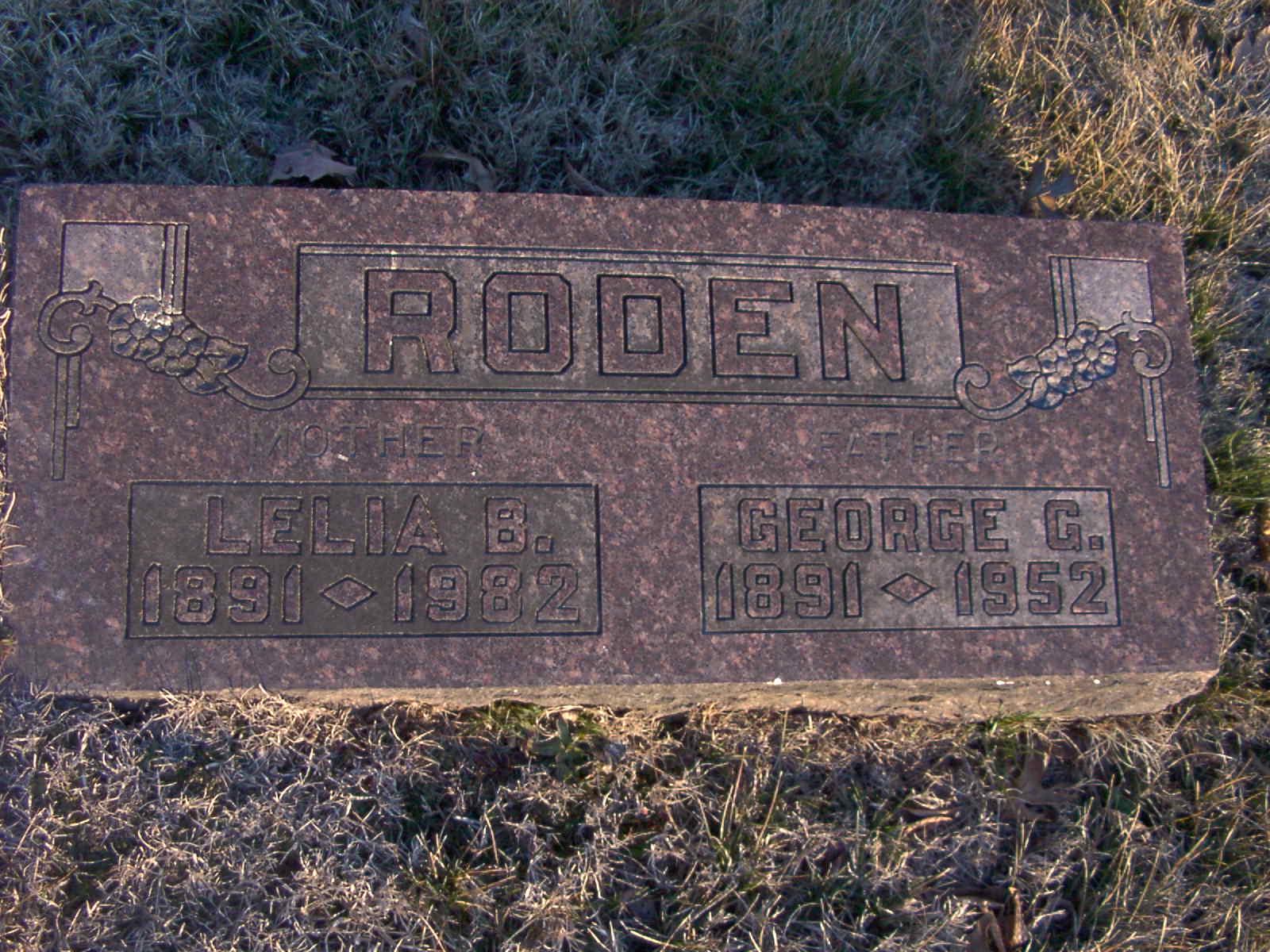 Inscription "Father" - SSW: Lelia B.- Research Note: George Greenberry Roden was a son of Giles Manley and Nancy (Turner) Roden, and a grandson of Caroline (Smith) and Greenberry Roden. He was a farmer and stockman. Wife was Lelia Baker and she was the informant on the death certificate. | Note Donna Cooper Death Certificate Phyllis Long Photo Jay Trace |