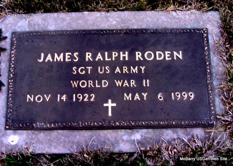 Inscription: "SGT. US ARMY WORLD WAR II" - Research Note: James was a son of George G. and Lelia (Baker) Roden. He attended school in Monett for seven years and graduated in 1941 from Purdy High School. He was a veteran of World War II, a farmer, and cattleman near McDowell before retiring. He was preceded by one brother, Lester Roden; and two sisters, Irene Roller and Ruth Hayward. | Monett Times Photo Jay Trace |
