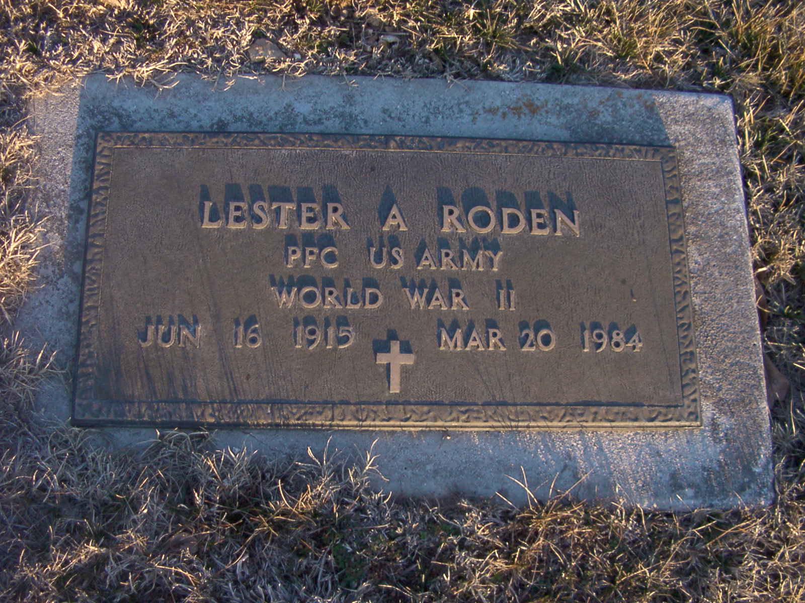 | RODEN, Lester Albion | June 16, 1915 | Mar. 20, 1984 | Inscription: "PFC US ARMY WORLD WAR II KOREA" - Research Note: Son of George Greenberry Roden and Lelia Belle Baker. | Census Phyllis Long Photo Jay Trace |
