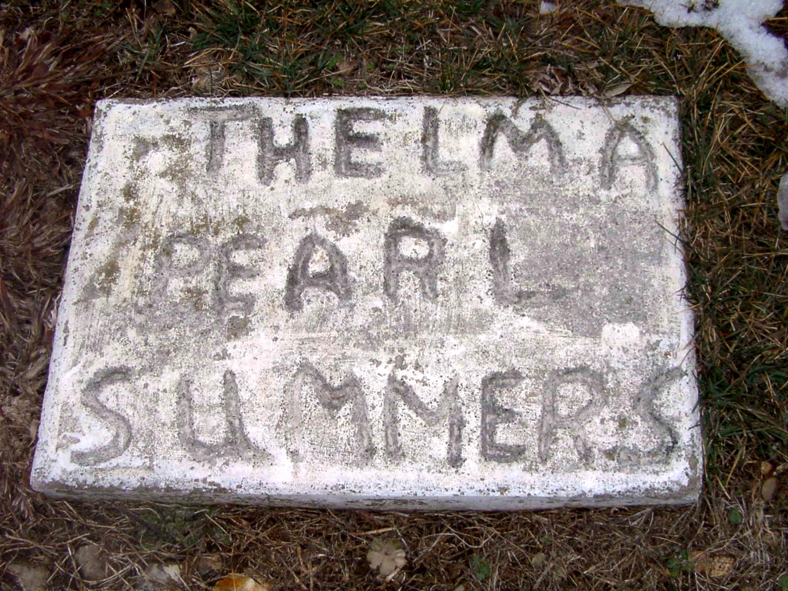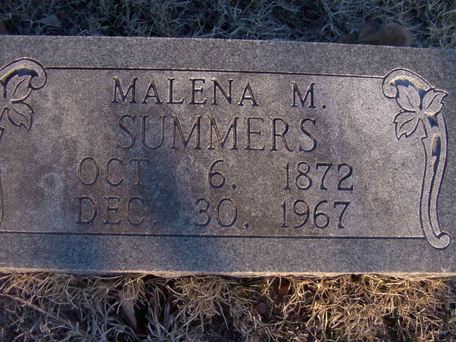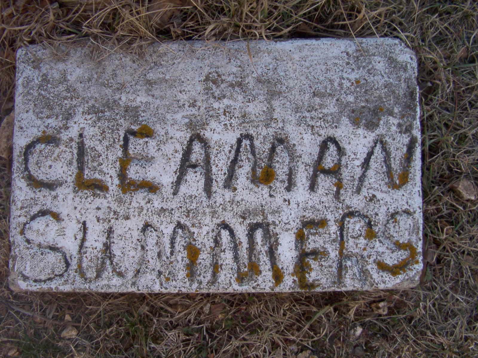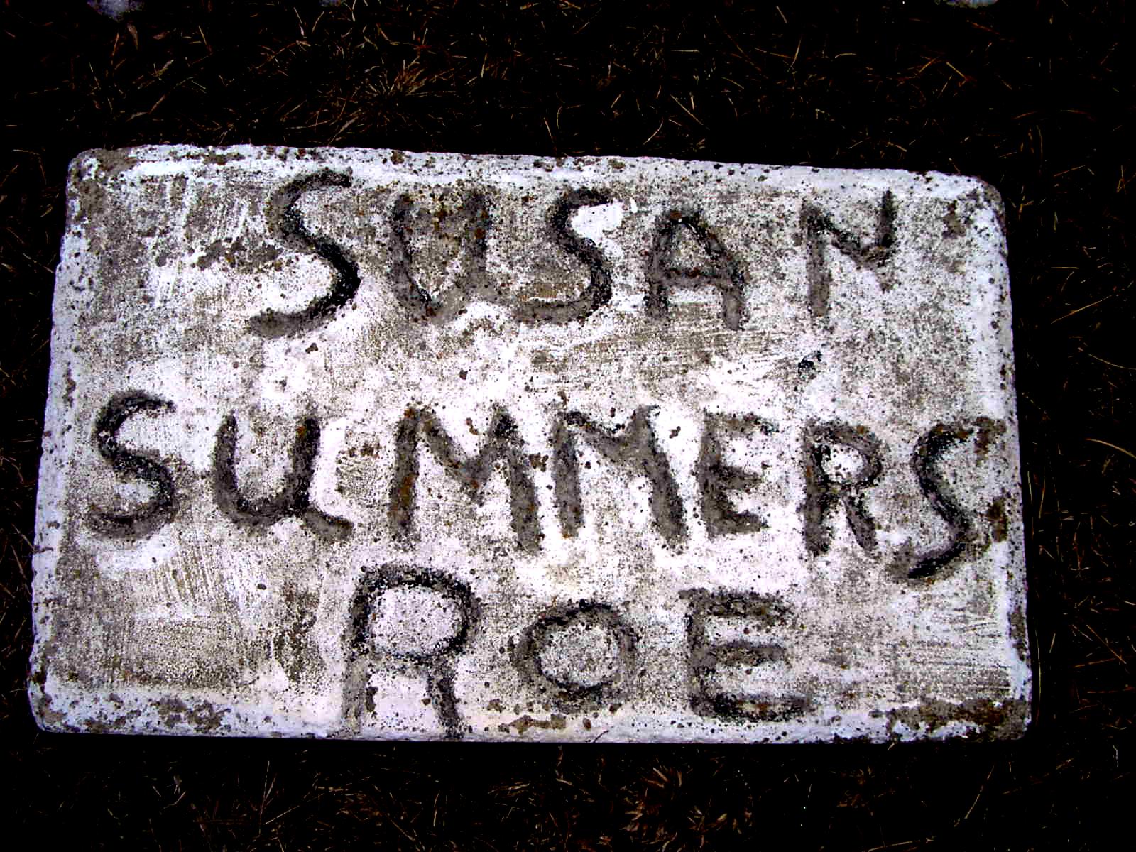 Research Note: Handmade Stone with no dates. She was the widow of Benjamin F. Roe at time of her death. Died of a pulmonary occlusion. Parents listed as John Summers and Margaret Downing. Informant was Charles Summers of Monett, MO. | Death Certificate Photo Jay Trace |