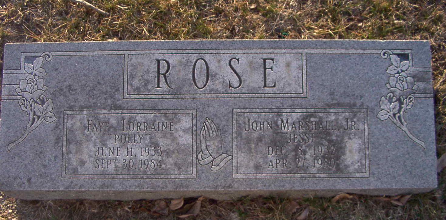 | ROSE, Faye Lorraine "Polly" | June 11, 1933 | Sept. 30, 1984 | SSW: John Marshall Rose | Photo Jay Trace |