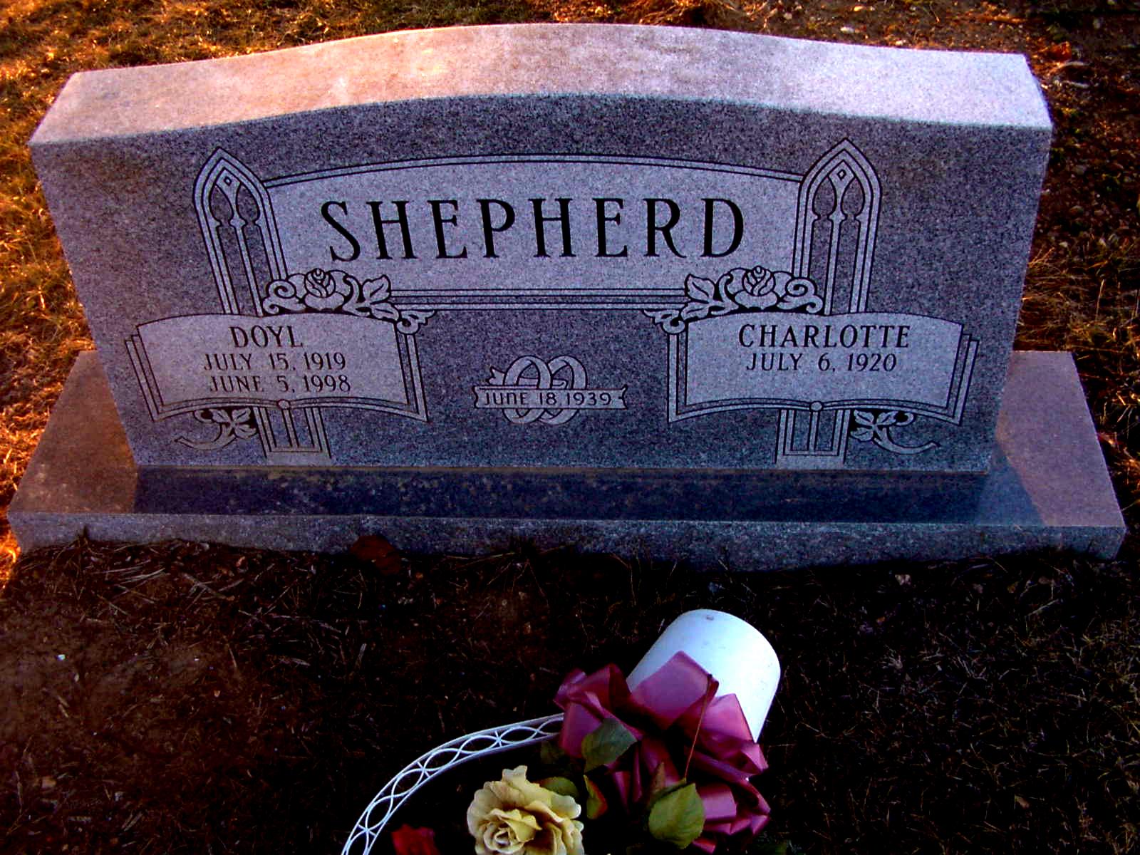 SSW: Doyl Shepherd - Inscription: (Wed) "June 18, 1939" - Research Note: She was a daughter of Lundy and Anna (Curtis) Davis. June 18, 1939, Doyl Shepherd and Charlotte Davis were united in marriage in Arkansas. He preceded her in death June 5, 1998. | Monett Times Photo Jay Trace |