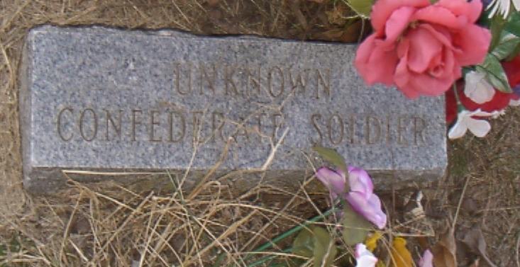 | UNKNOWN CONFEDERATE SOLDIER | No Date | after 1864 | Research Note: "Unknown Confederate Soldier" The story, as told by Doyle Davis, is that after the Civil War had ended, a Confederate soldier was walking south through King's Prairie Township, not far from the cemetery, and a landowner chased him down and killed him. No one knew his name, but he was laid to rest at Bethel Baptist Cemetery. Years later, Doyle's uncle, Winford Davis and another man bought a simple stone and marked the final resting place of the soldier. | Note Photo Jay Trace |
