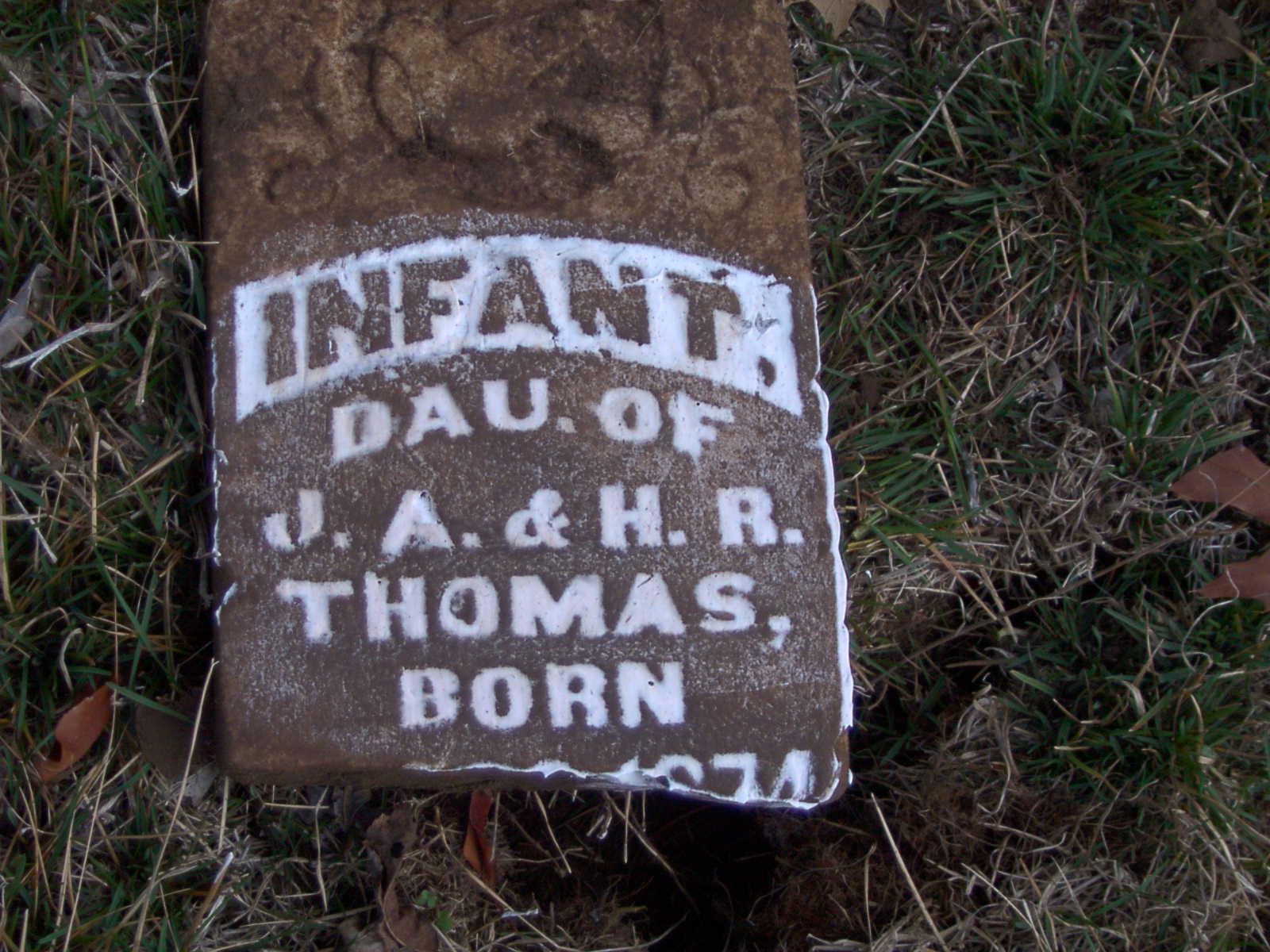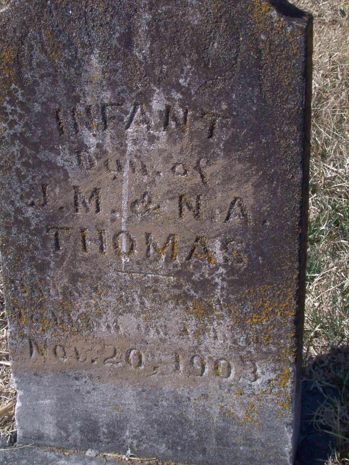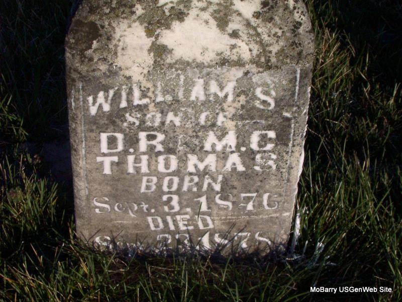 | THOMAS, William S. | Sept. 3, 1876 | Sept. 23, 1878 | Inscription: "Son Of D. R. and M. C. Thomas" - Research Note: Son of David Reuben Thomas and Mesa Amanda Catherine Safrona McCoy. | Note Phyllis Long Photo Jay Trace |