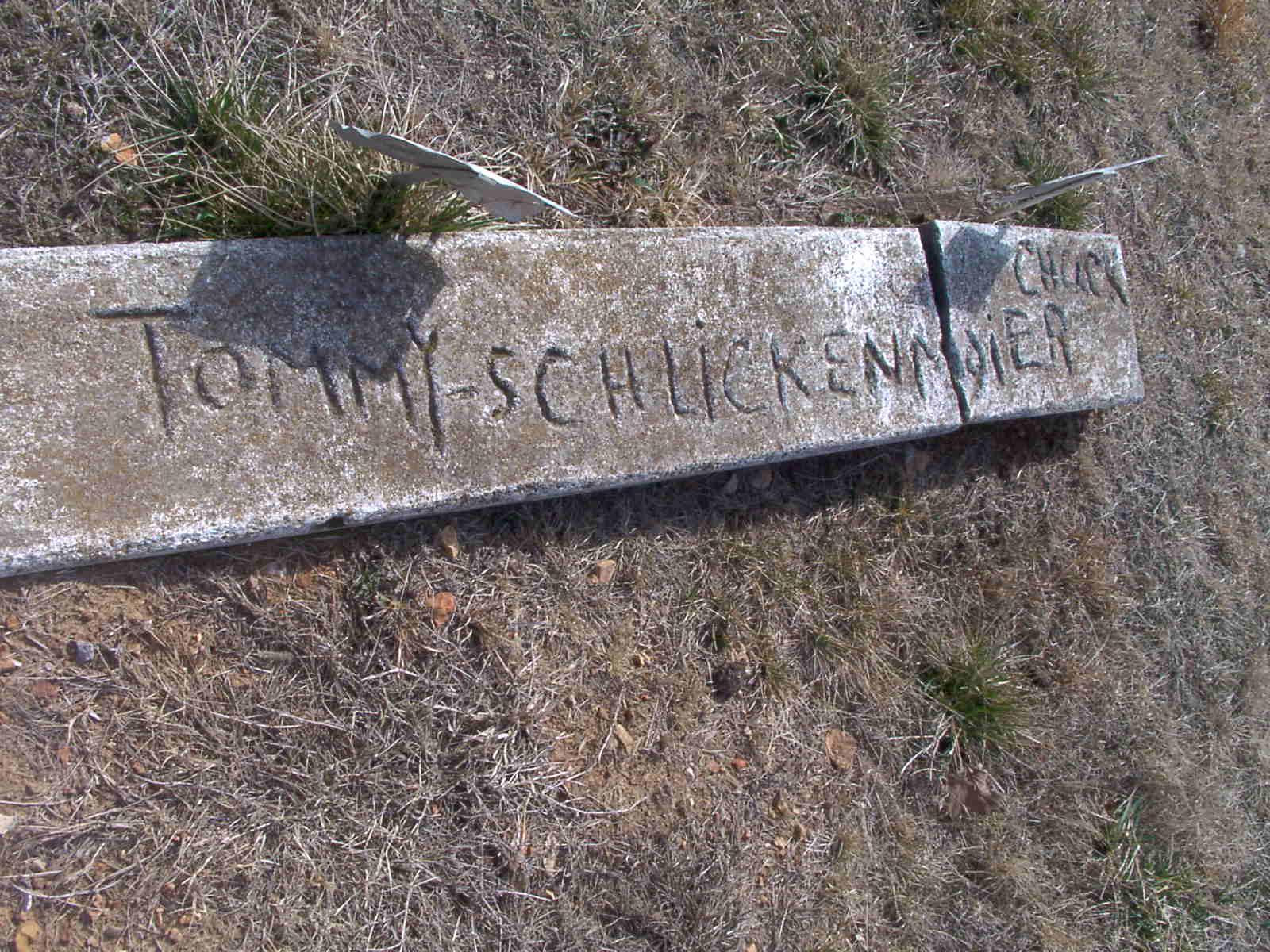 | SCHLICKENMAIER, Charles Louis "Chuck" | 1918 | 1988 | SSW: Charles Lorain "Tommy" Schlickenmaier - Research Note: Has an aluminum Funeral Home Plate. | Photo Jay Trace |