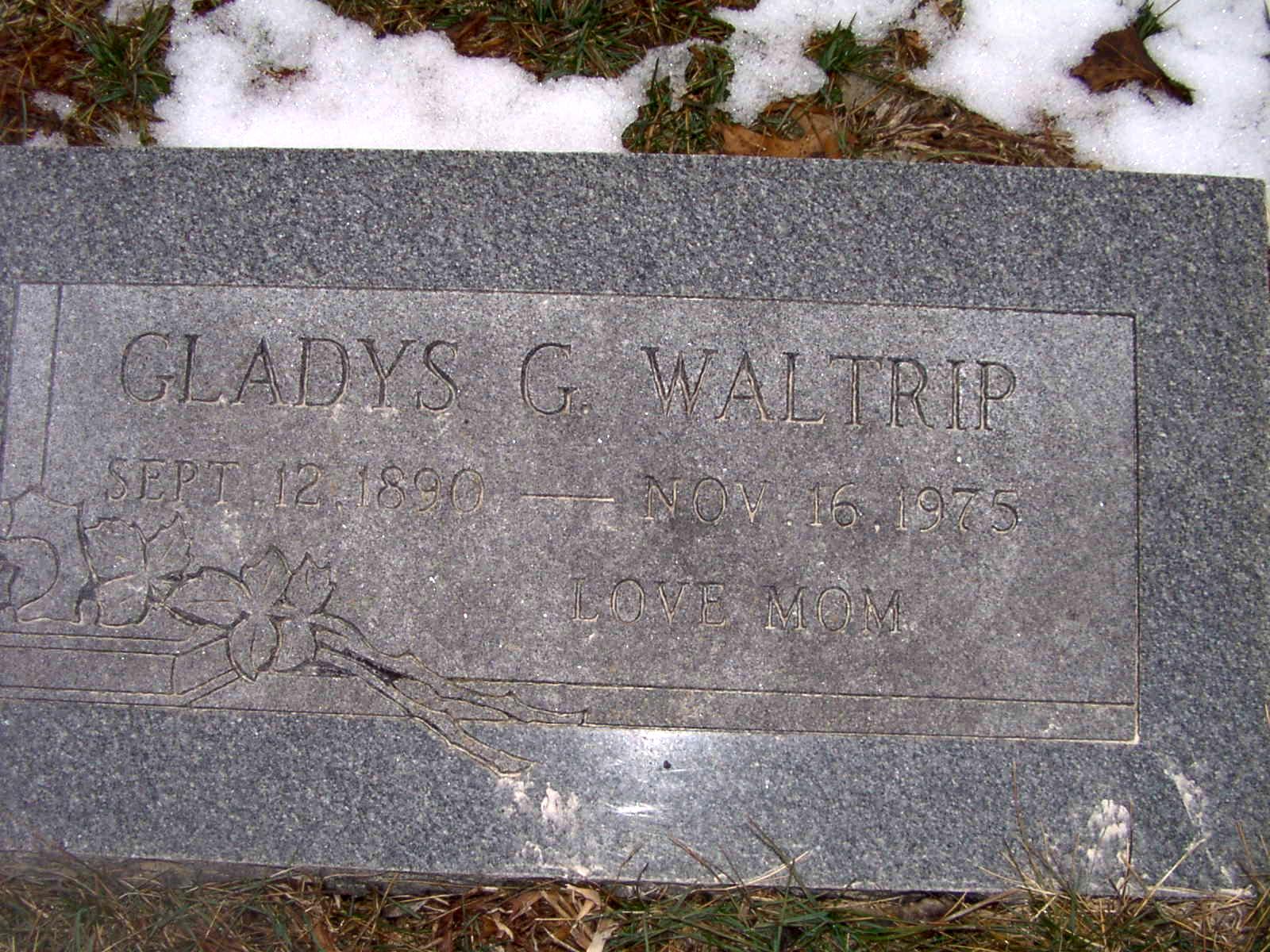 | WALTRIP, Gladys G. | Sept. 12, 1890 | Nov. 16, 1975 | Inscription: "Love Mom" - Research Note: Wife of John Benson Waltrip. Gladys first married Mr. Garder. | John's DC Phyllis Long Photo Jay Trace |