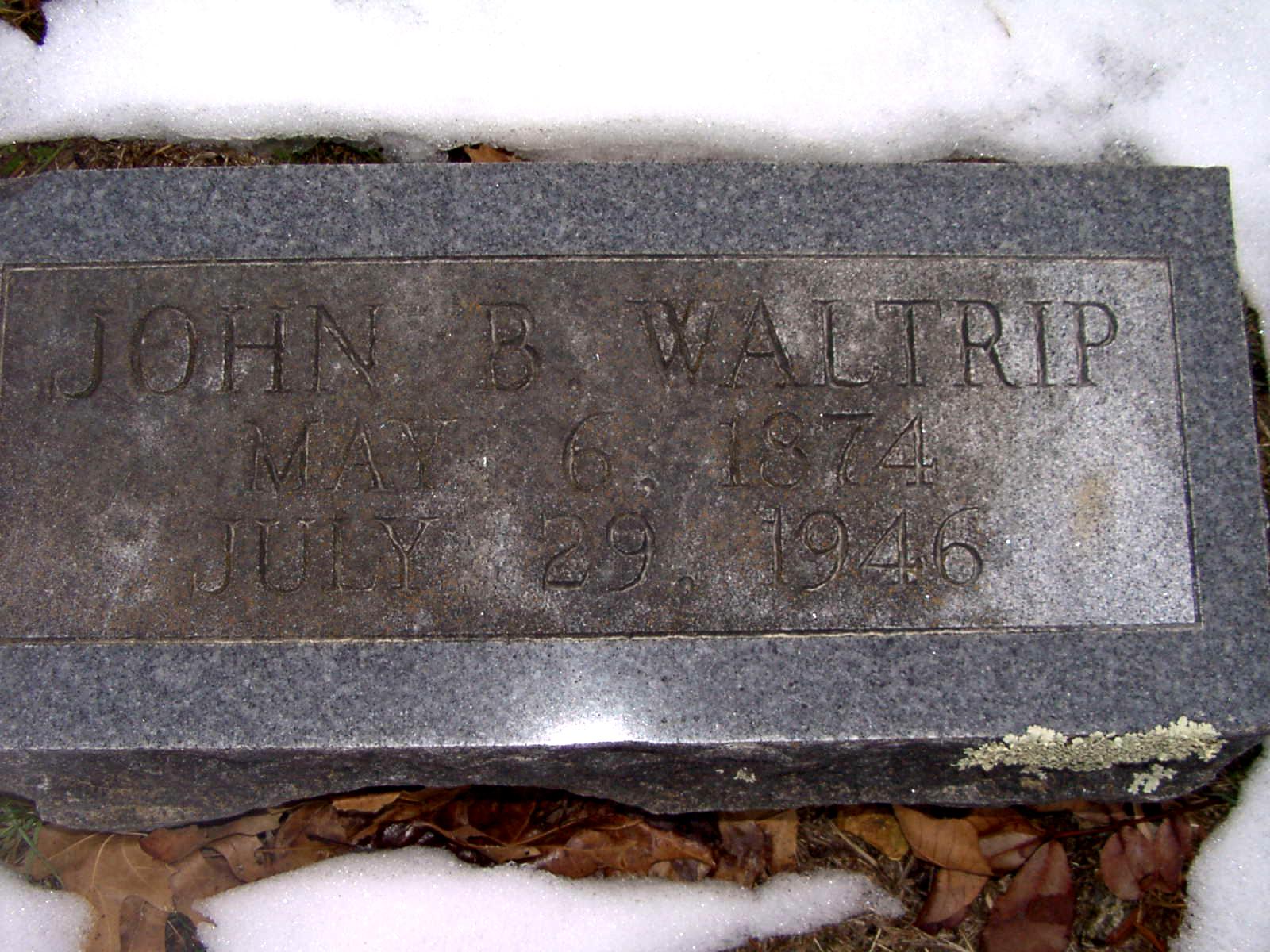 Research Note: His wife was Gladys Waltrip. Son of Elijah Waltrip born IL and Delilah Haynes. His wife was the informant on the death certificate. - John B. Waltrip, age 17, first married Rebecca Ann Prater, age 17, on Dec. 22, 1892 in Barry Co., MO. John, age 24, second married Maggie A. Brown, age 17, on Jan. 4, 1898 in Barry Co., MO. John, age 40, married Verda Maghan, age 26, on Aug. 9, 1914 in Barry Co., MO. In the 1920 Census, Monett Ward 4, Barry, Missouri, John is married to Artelia (unknown). In the 1930 Census, Monett, Barry, Missouri, John is married to Gladys with Gladys' children surname Garder. | Death Certificate Census MO Marriage Records Phyllis Long Photo Jay Trace |