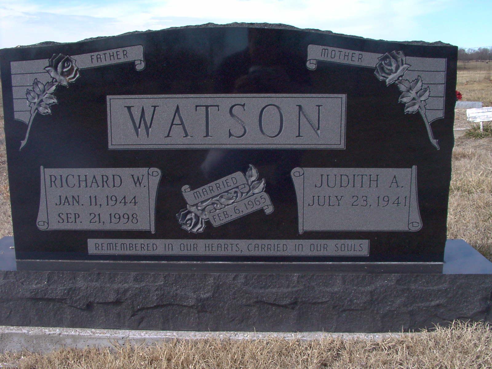 | WATSON, Richard W. | Jan. 11, 1944 | Sept. 21, 1998 | SSW: Judith A. - Inscription: "Married Feb. 6, 1965" - "Remembered In Our Hearts, Carried In Our Souls" - "Our Children Larry, David, Joseph, Michele" - "Father" - "AE3 US NAVY" | Photo Jay Trace |