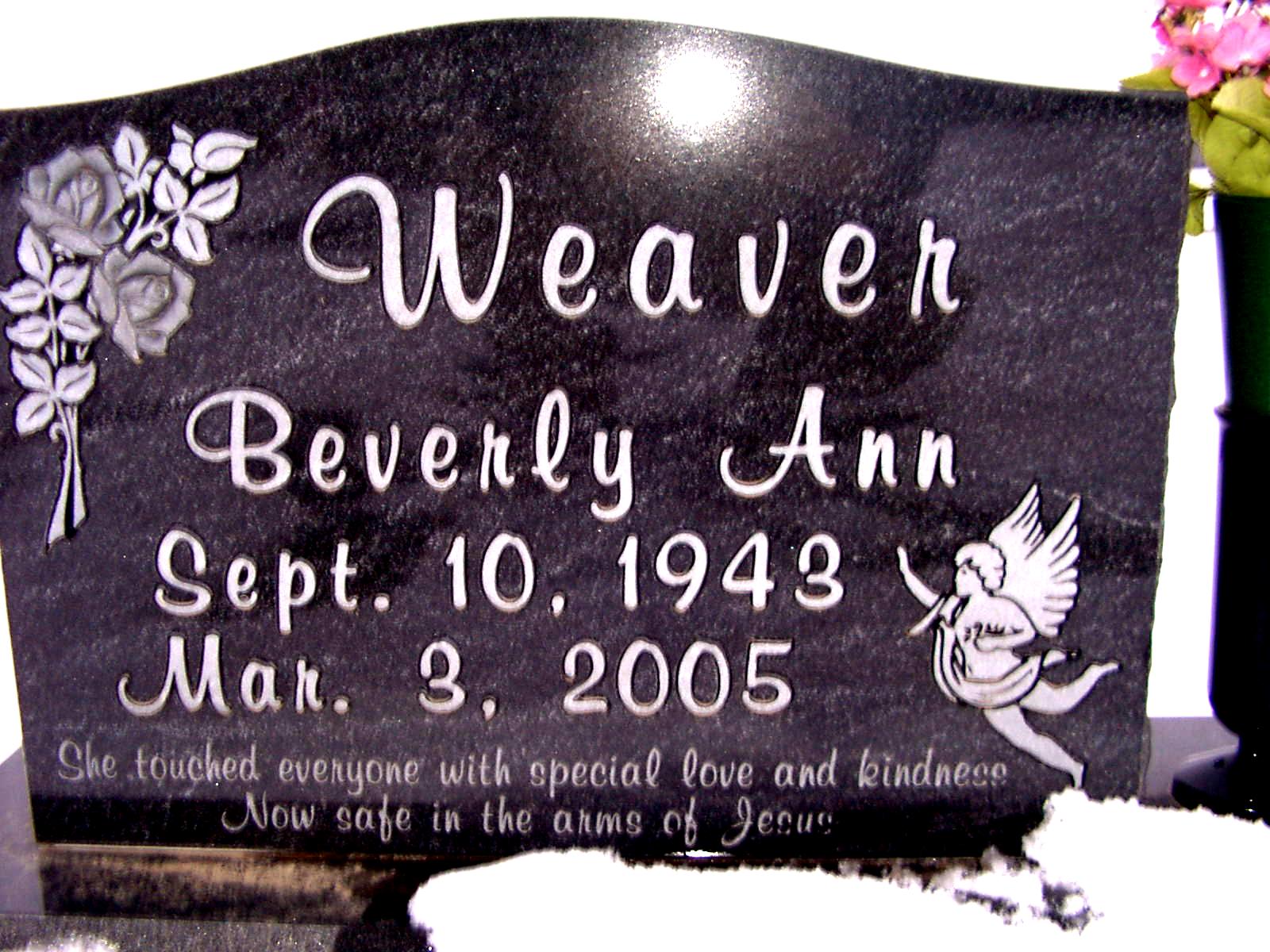 | WEAVER, Beverly Ann (HENDERSON) (MITTENDORF) | Sept. 10, 1943 | Mar. 3, 2005 Cox South Hosp., Springfield, Greene Co., MO |