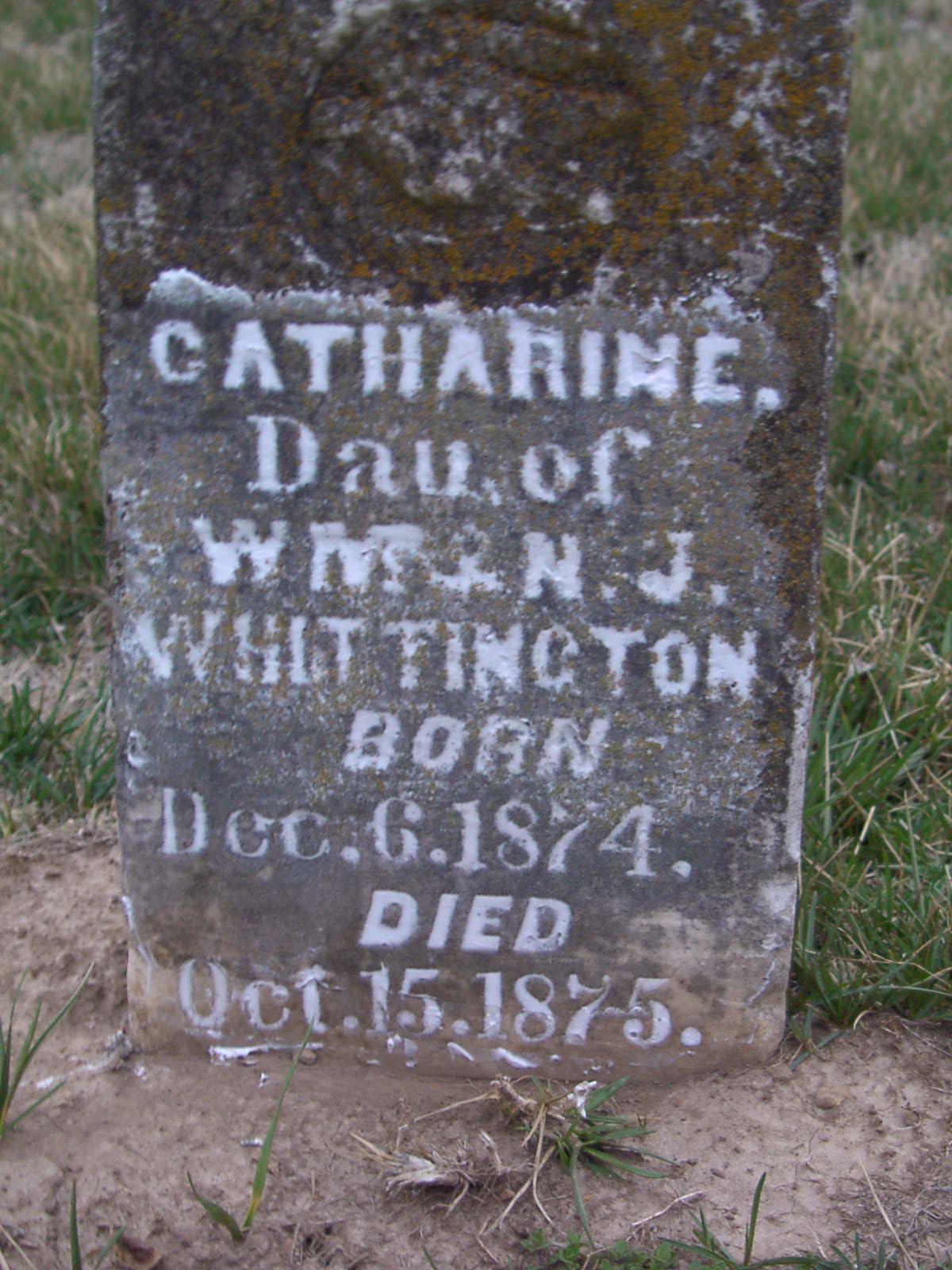 | WHITTINGTON, Catherine | Dec. 6, 1874 | Oct. 15, 1875 | Inscription: "Dau of W. N. and N. J. Whittington" | Photo Darla Marbut |