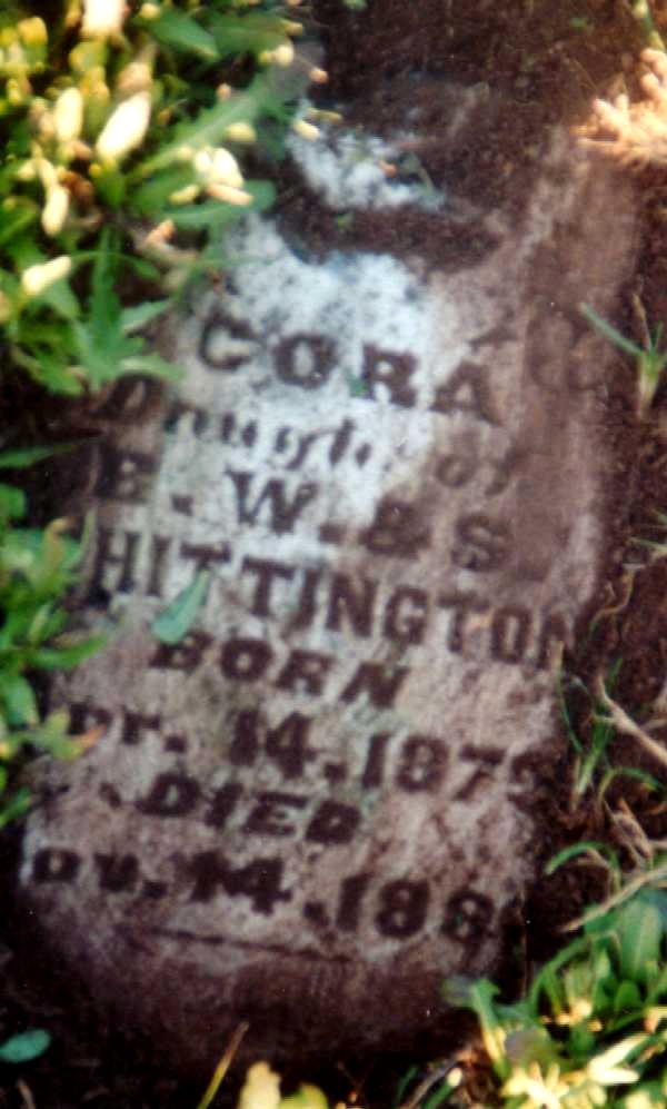| WHITTINGTON, Cora | Apr. 14, 1879 | Nov. 14, 1881 | Inscription: "Dau. of B. W. and S. Whittington" - Another Photo | Photo Darla Marbut Photo Jay Trace |