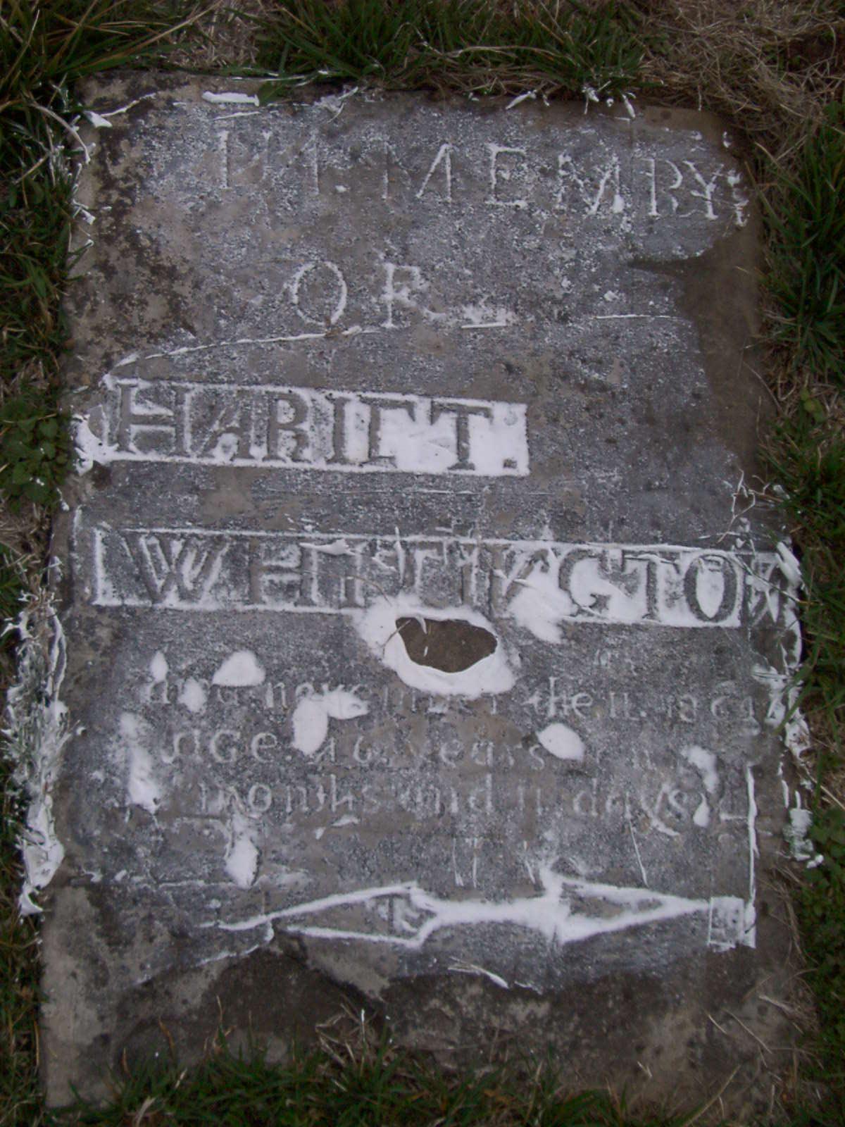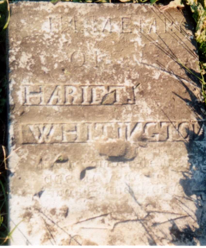 | WHITTINGTON, Harriett (STRINGER) | 1824 | Nov. 11, 1869 | Research Note: Date was transcribed incorrectly in the cemetery books. First wife of Benjamin W. Whittington 1821 - 1893. - Another Photo | Census Phyllis Long Photo Darla Marbut Photo Jay Trace |
