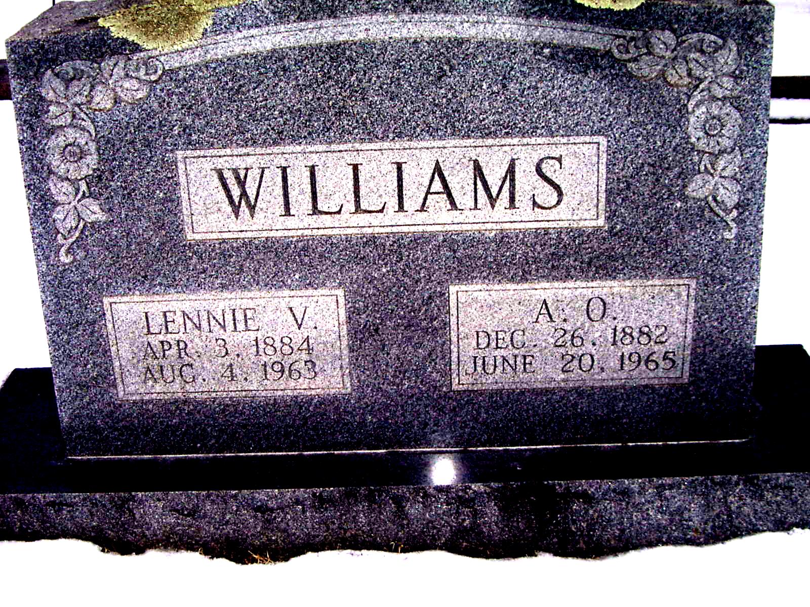 | WILLIAMS, Lena "Linnie" Viola (HENDERSON) (McCOY) | April 3, 1884 | Aug. 4, 1963 | SSW: A. O. Williams - Research Note: Lennie V. Henderson, age 19, first married William L. McCoy, age 20, on Oct. 9, 1901 in Barry Co., MO. Second husband, A. O. Williams married Lennie V. Henderson on Sept. 14, 1907 in Barry Co., MO. Daughter of James Tilman Henderson and Mary Lucinda Marbut. | MO Marriage Records MO Birth Records Census Phyllis Long Photo Jay Trace |