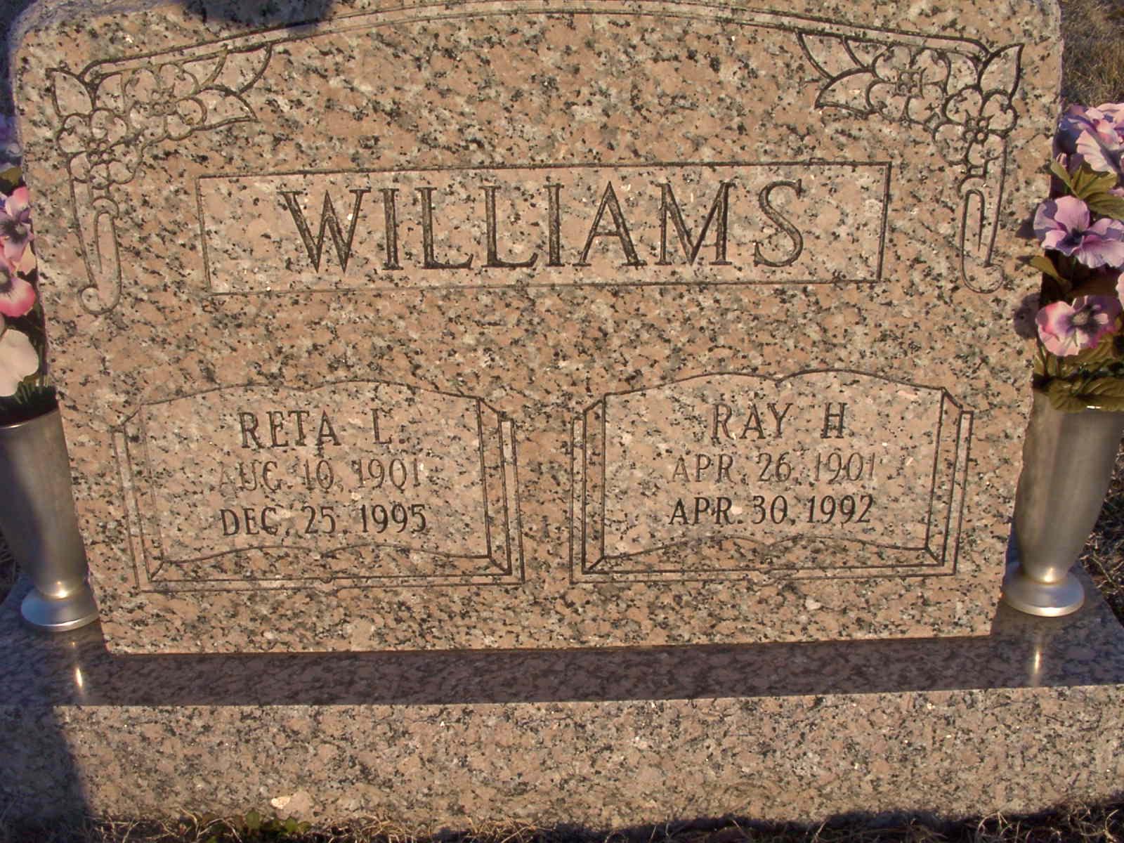 | WILLIAMS, Reta L. | Aug. 10, 1901 | Dec. 25, 1995 | SSW: Ray H. Williams | Photo Jay Trace |
