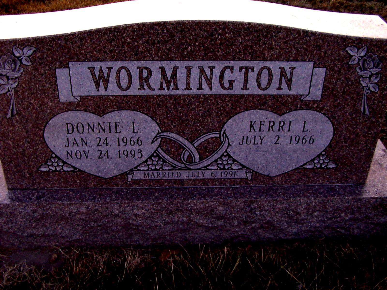 | WORMINGTON, Donnie L. | Jan. 24, 1966 | Nov. 4, 1993 | SSW: Kerri L. Wormington - Inscription: "Married July 6, 1991" | Photo Jay Trace |