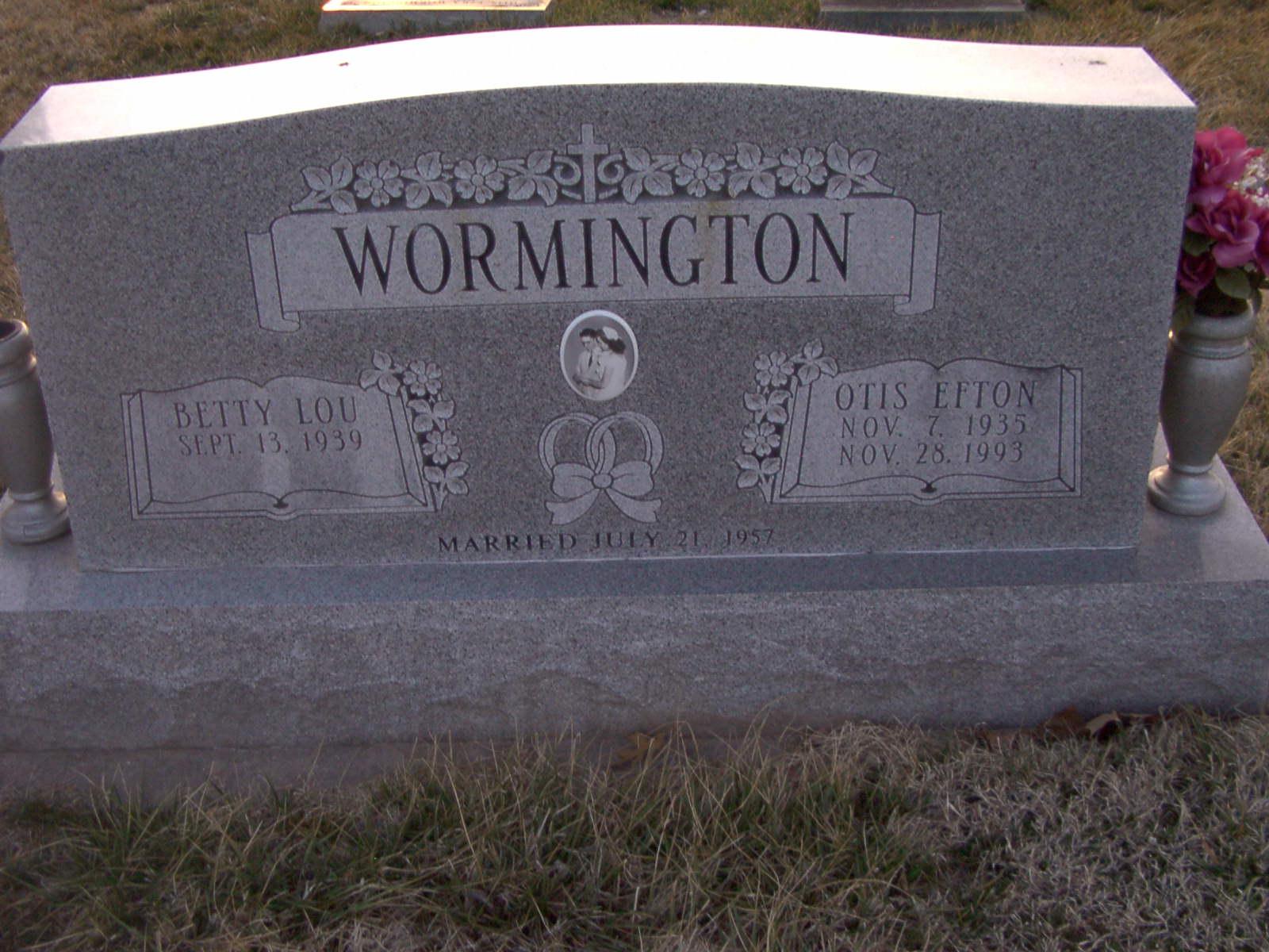 | WORMINGTON, Betty Lou | Sept. 13, 1939 | No Date | SSW: Otis Efton Wormington - Inscription: "When God Gave Me You, He Gave Me A Love So True That Would Last For a Lifetime. We Had Joy And We Had Tears And We Shared Our Dreams Together And Honey I Will Love You Forever." - "Our Sons Wesley, Clifton, Tony, Donnie" - "Victory In Jesus" | Photo Jay Trace |
