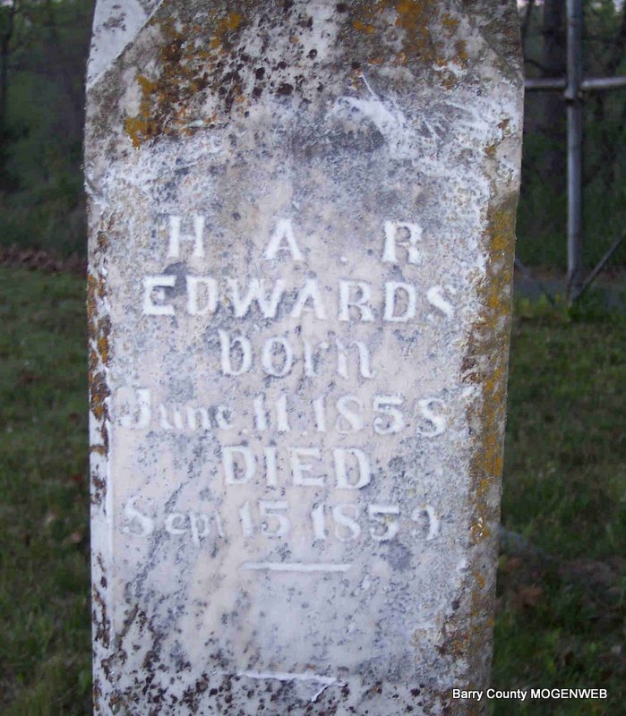| EDWARDS, Hester Ann Rachel | June 11, 1858 Purdy, Barry Co., MO |