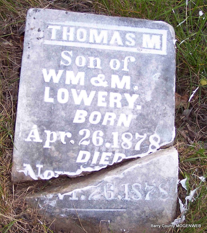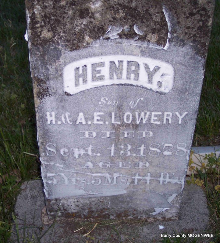 | LOWERY, Henry | Abt. 1873 | Sept. 13, 1878 | Inscription: "Son of H. and E. Lowery - Aged 5 yrs, 5 ms, 14 ds" | Photo Diana Cope |