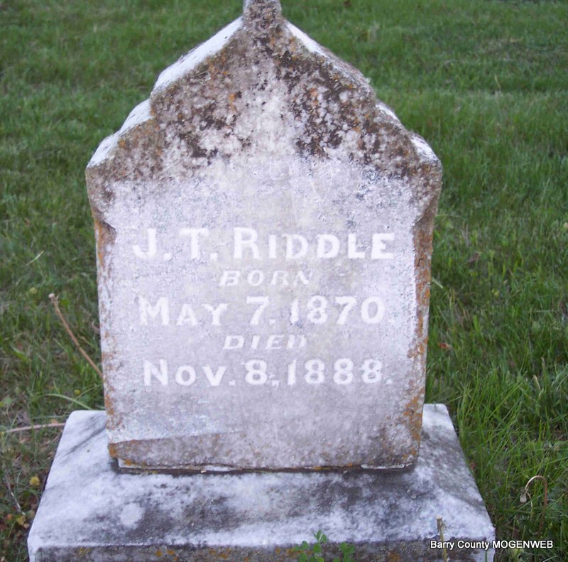 | RIDDLE, J. T. | May 7, 1870 | Nov. 8, 1888 | No Data | Photo Diana Cope |