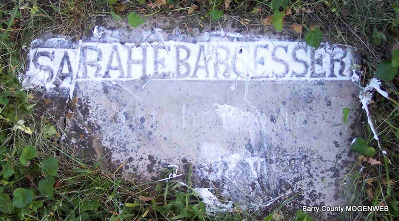 | BARCESSER, Sarah E. | 1887? | 1887? | Research Note: Homemade stone. | Photo Diana Cope |