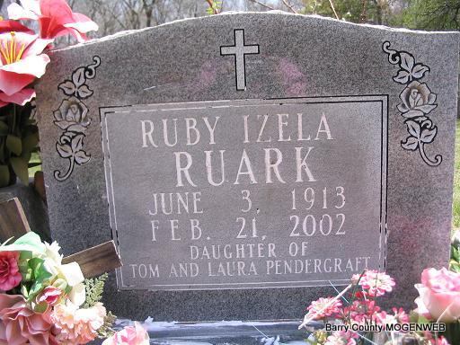 | RUARK, Ruby Izella (PENDERGRAFT) | June 3, 1913 Washburn, Barry Co., MO |